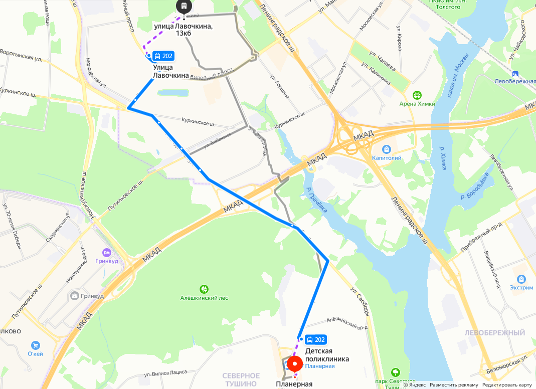 — На троллейбусе 202 до остановки «ул. Лавочкина», далее — пешком около 640м